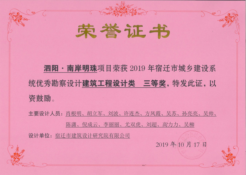 • 泗陽.南岸明珠建筑工程設(shè)計三等獎
