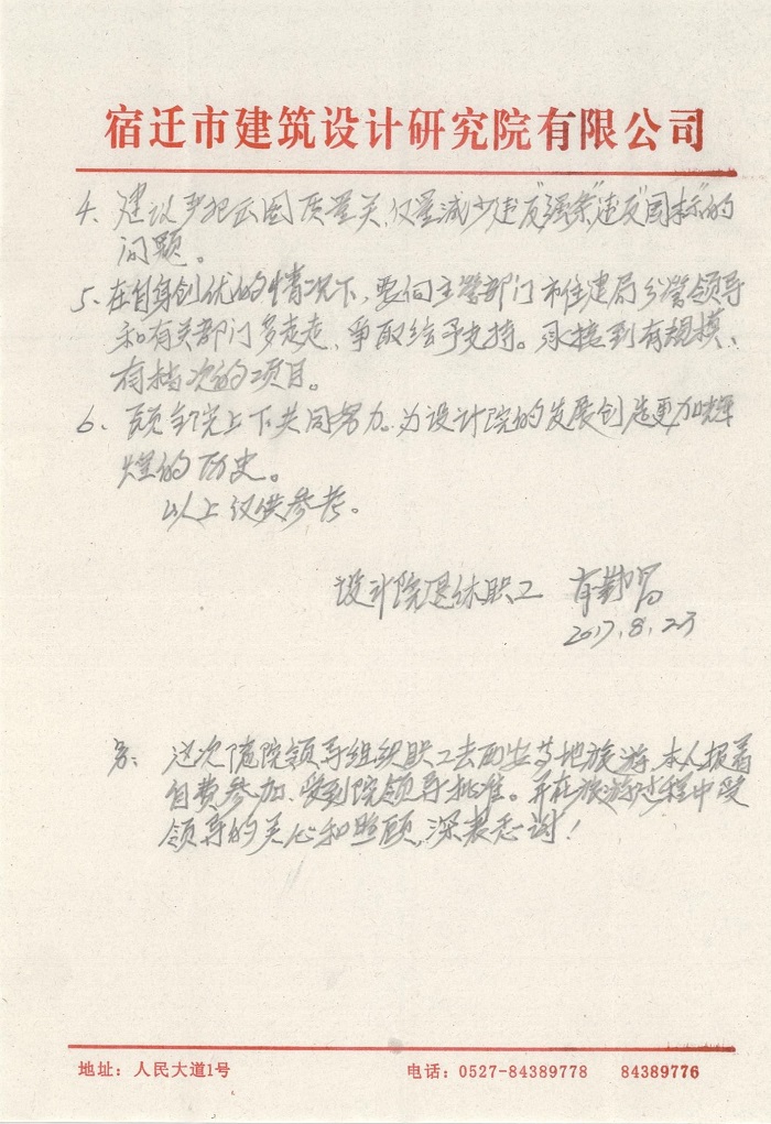 6、愿全院上下共同努力,為設(shè)計(jì)院的發(fā)展創(chuàng)造更加輝煌的歷史。